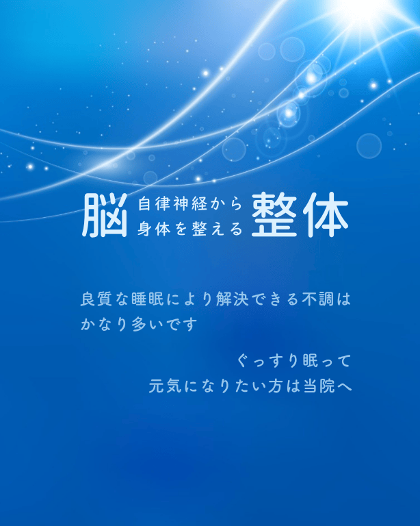 当院では、誰にとっても安全で、あなたにとって最も効果的な健康法が「睡眠の質を良くすること」と考え、睡眠の質を良くするための施術を行っています。